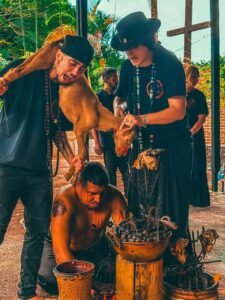 com hierarquias semelhantes às da Quimbanda, mas reinterpretadas dentro de uma