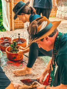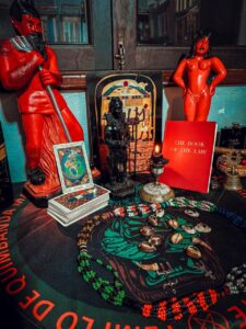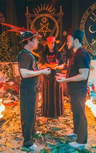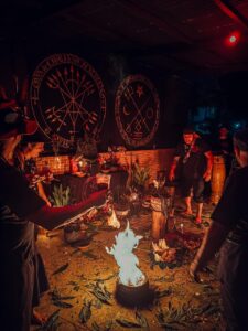 Seus cantos, oferendas e pactos se voltam à potência invertida da Cruz, à